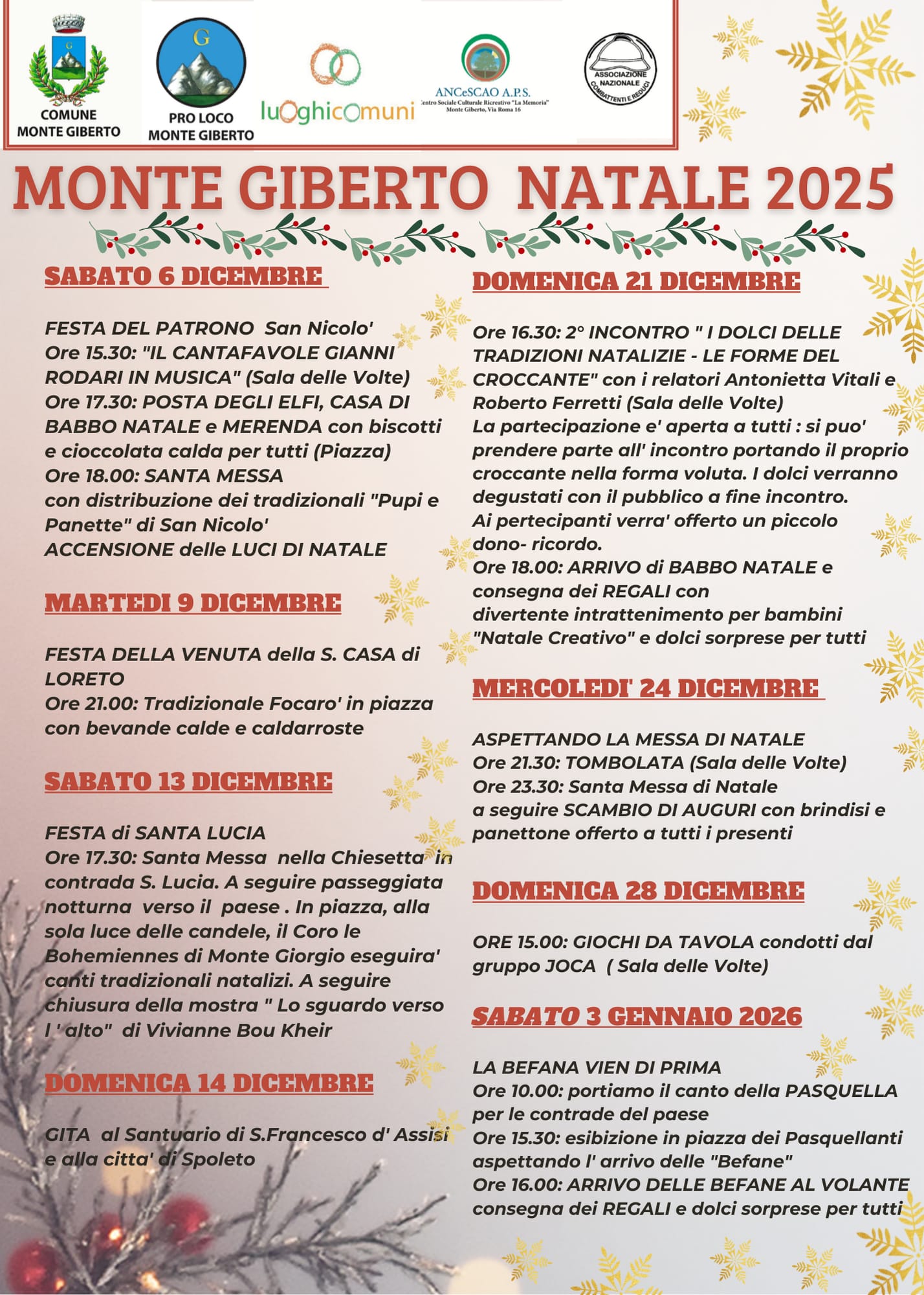 In allegato locandina delle manifestazioni in programma per il periodo delle festività natalizie 2025/2026