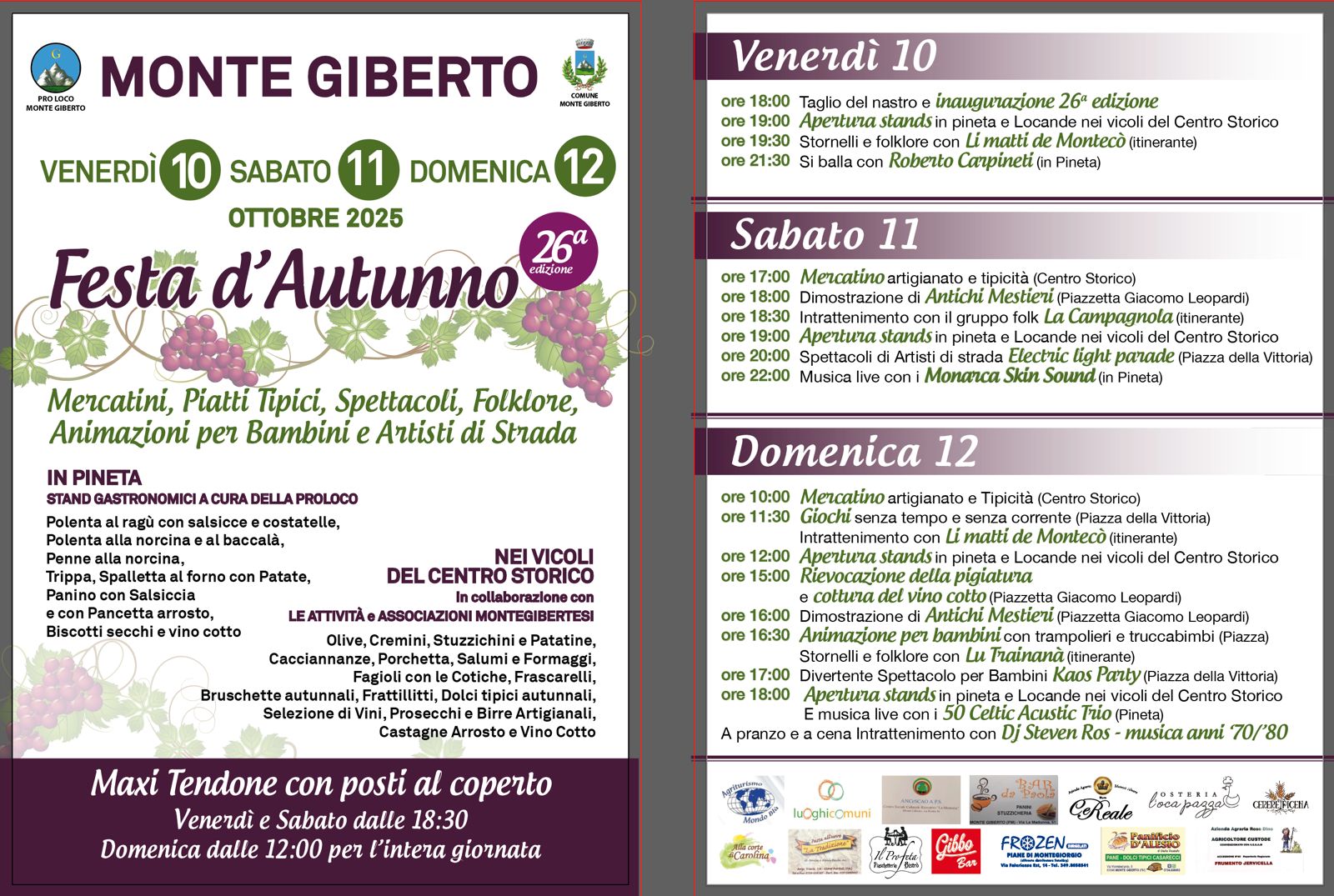 Venerdì 10 sabato 11 e domenica 12 ottobre 2025
